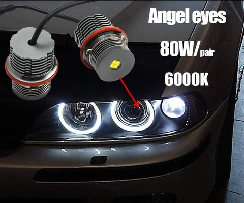 Set Angel Eyes LED 80W BMW Serie 1/5/6/X E87 E39 M5 E60 E61 E63 E64 M6 E65 E66 E83 X3 E53 X5 (2000-2008)