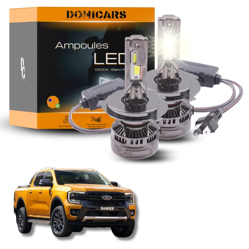 Remplacer les ampoules traditionnelles par les ampoules LED H4 de votre Ford Ranger 2 (2005 à 2012) est un jeu d'enfant grâce à la technologie Plug & Play. De plus, aucune modification n'est requise, vous permettant de profiter d'une lumière blanche pure à 6500K qui améliore votre visibilité à tout moment.